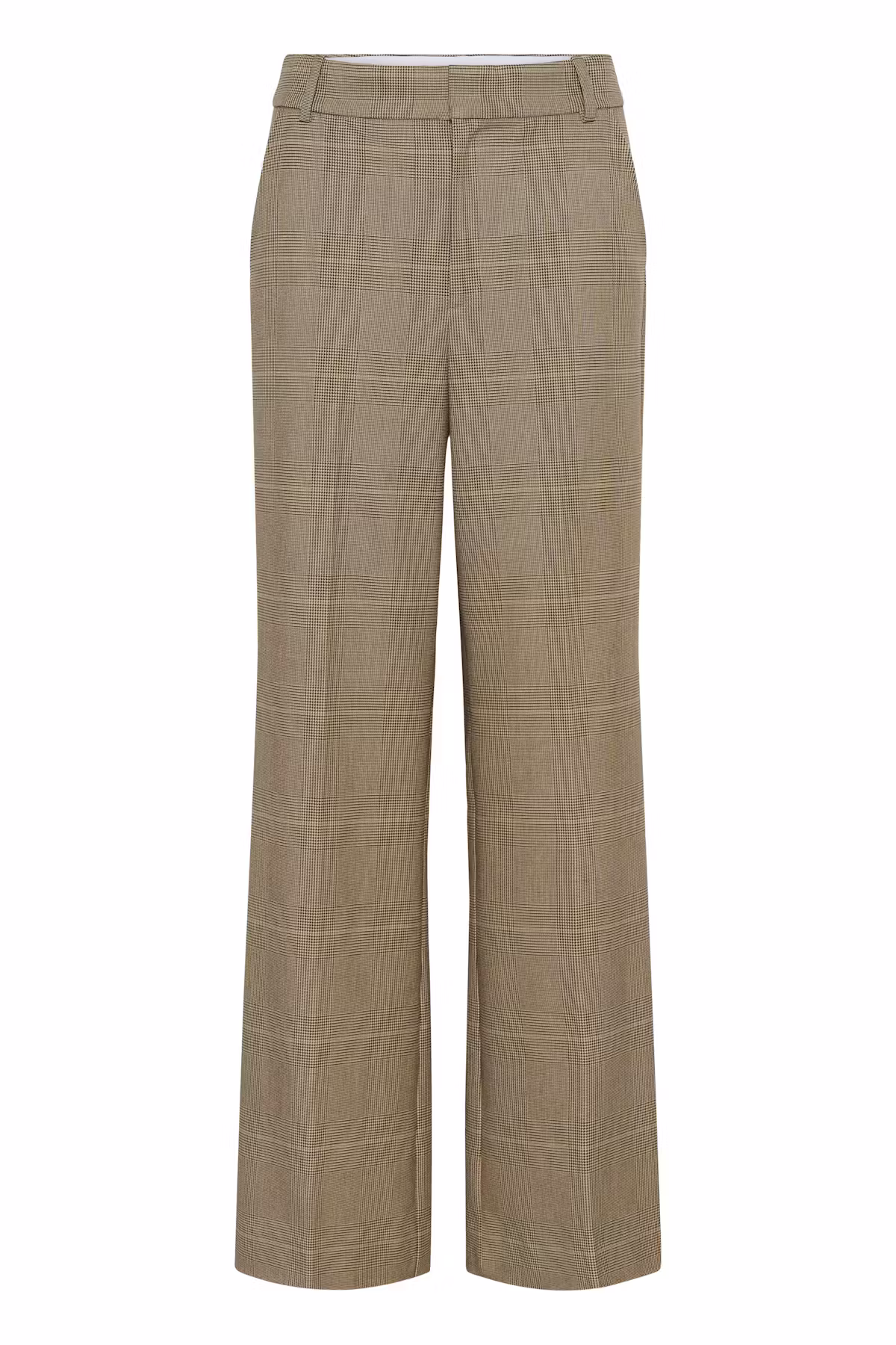 Dessa dambyxor har normal passform, hel längd och breda ben. Pressveck och midja med hällor kombinerar tidlös design med bekväm användning för både vardag och kontor.